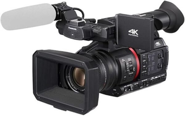 Panasonic AG-CX350 4K Camcorder (International Model) – 1″ MOS Sensor, 20x Optical, 32x Intelligent Zoom, UHD 4K, 1080p, Variable Frame Rate, Supports LANC Control, 2 x Media Card Slot, HLG Recording, 3.2″ LCD Screen, OLED Viewfinder, Individual Zoom, Focus, Iris Rings, Front-Mounted Mic with Front Audio Level, TC In/Out, 3G-SDI, HDMI Out, USB 3.0, USB 2.0 Host, LAN Port.